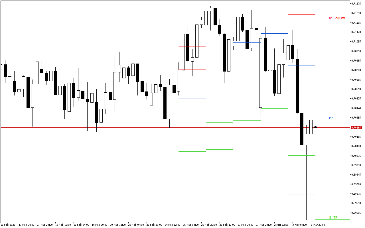 AUDUSD H4: Die Pivot Points vlakke vir die Amerikaanse Sessie op 4.3.2026