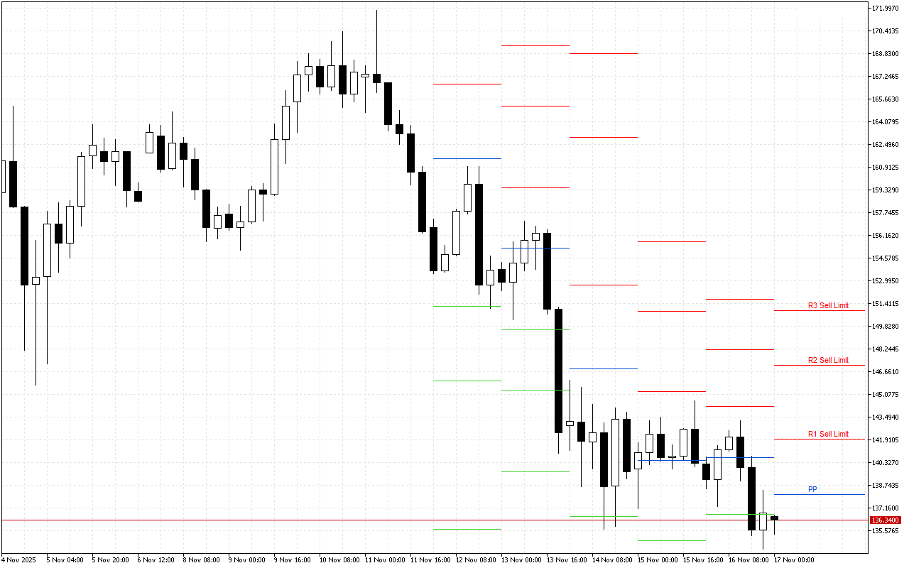PP: 5633.03;S1: 5605.07; S2: 5558.13; S3: 5530.17;R1: 5679.97; R2: 5707.93; R3: 5754.87.