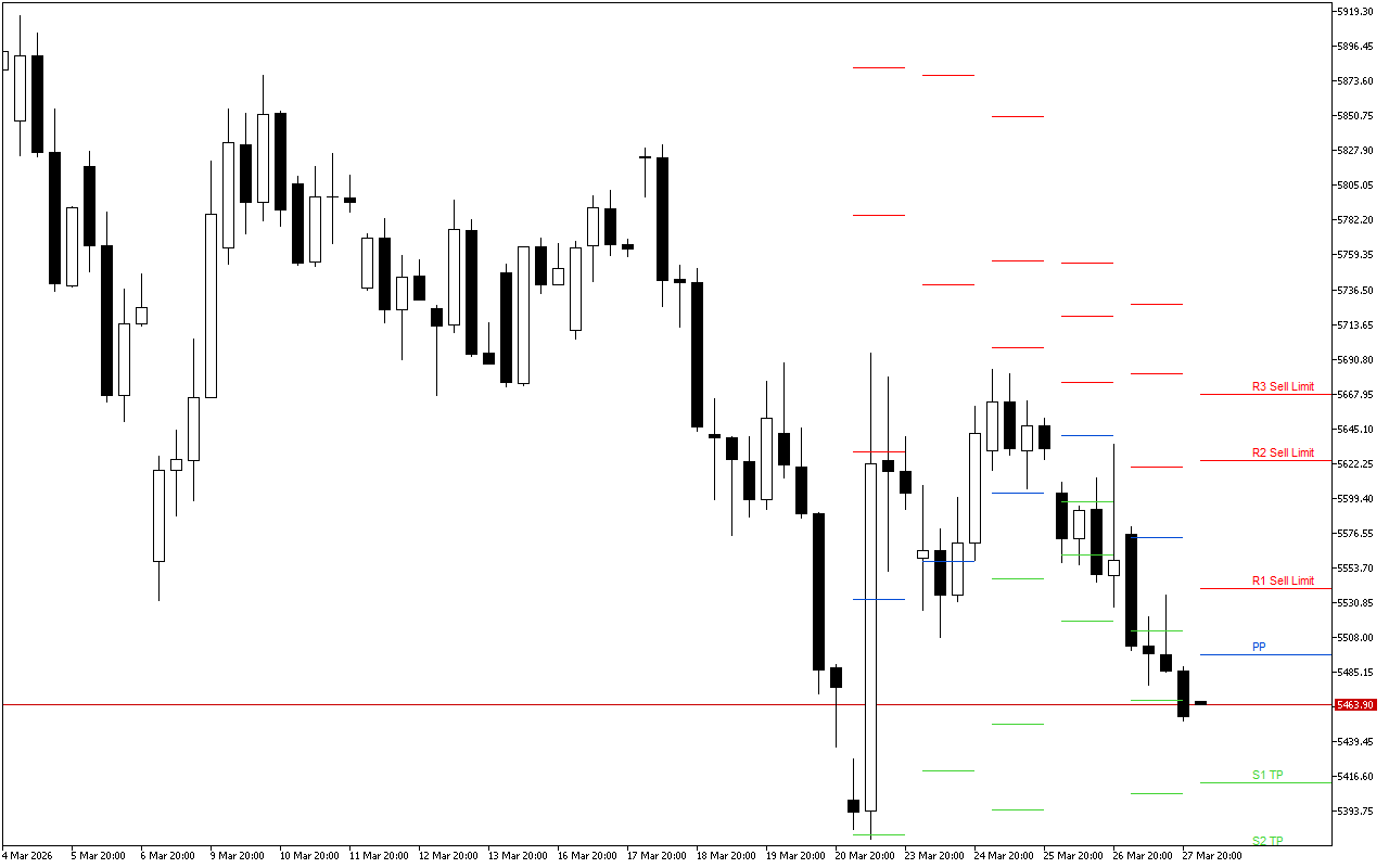 PP: 5496.40;S1: 5412.30; S2: 5368.80; S3: 5284.70;R1: 5539.90; R2: 5624.00; R3: 5667.50.