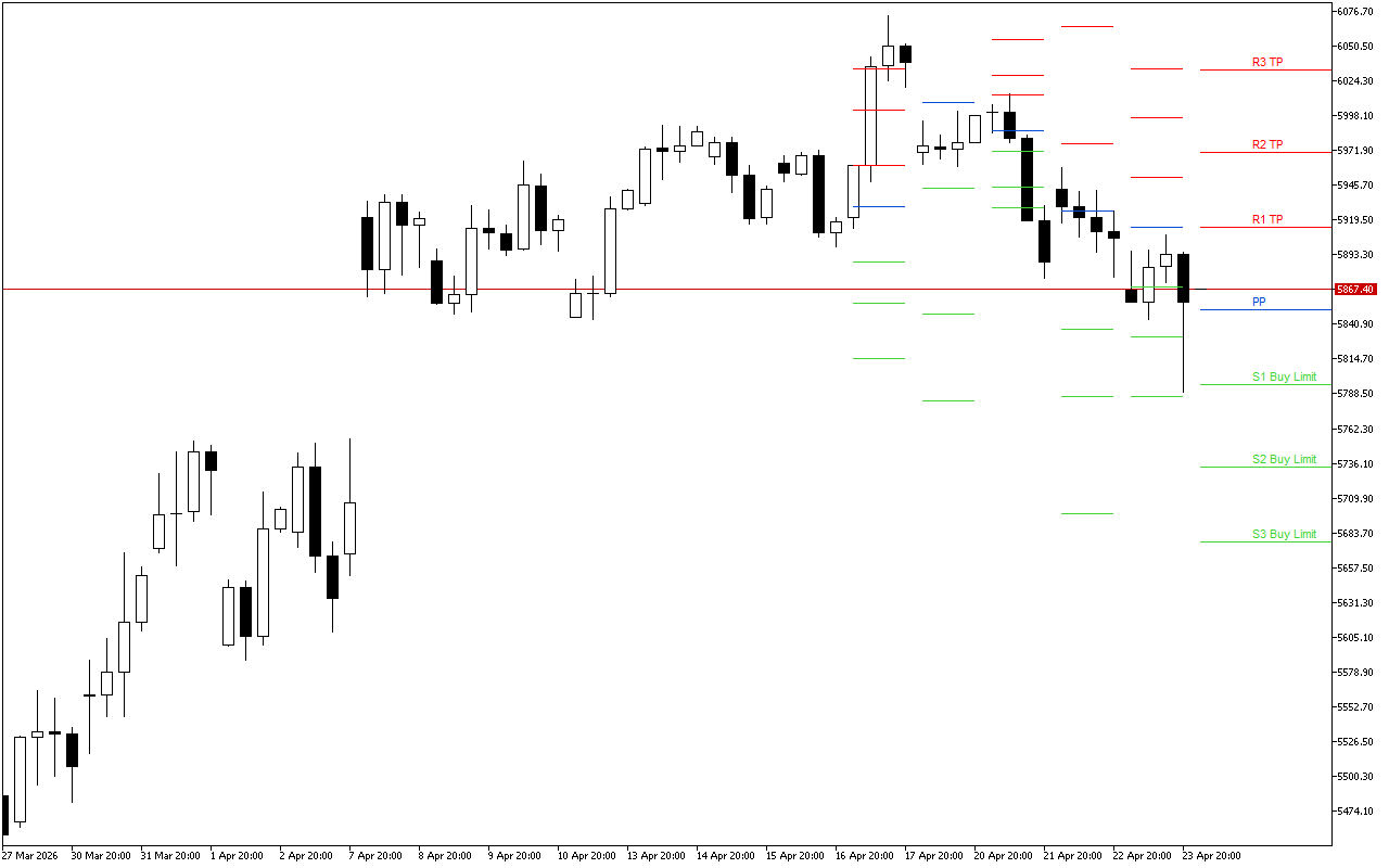 Αυτή τη στιγμή, το επίπεδο Pivot Points είναι περίπου 5851.97. Το άνοιγμα της αγοράς πάνω από αυτό το επίπεδο υποδηλώνει μεγαλύτερη πιθανότητα ανοδικής κίνησης εντός της ημέρας.