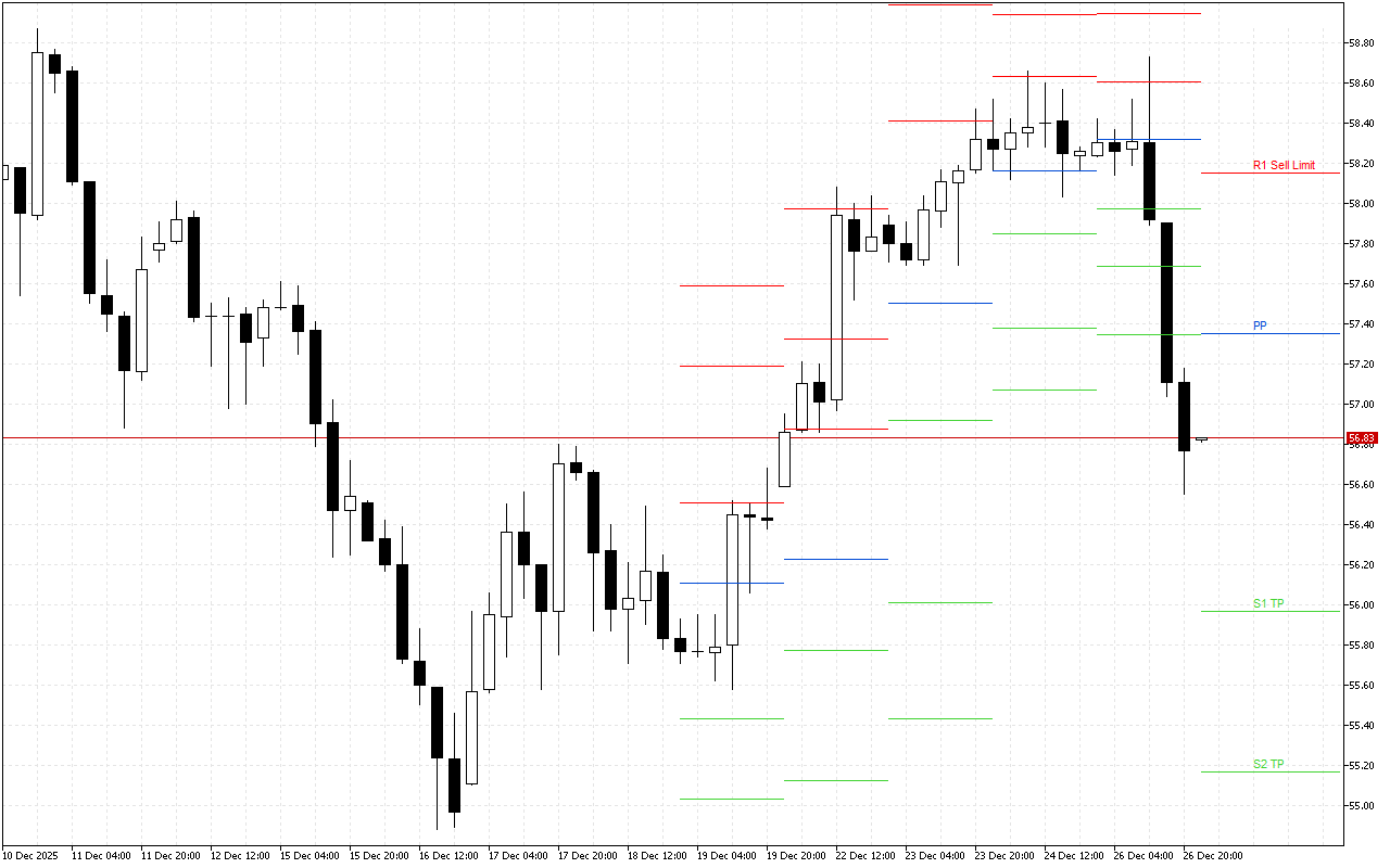 WTI H4: Matakan Pivot Points don Zaman Amurka akan 15.1.2026