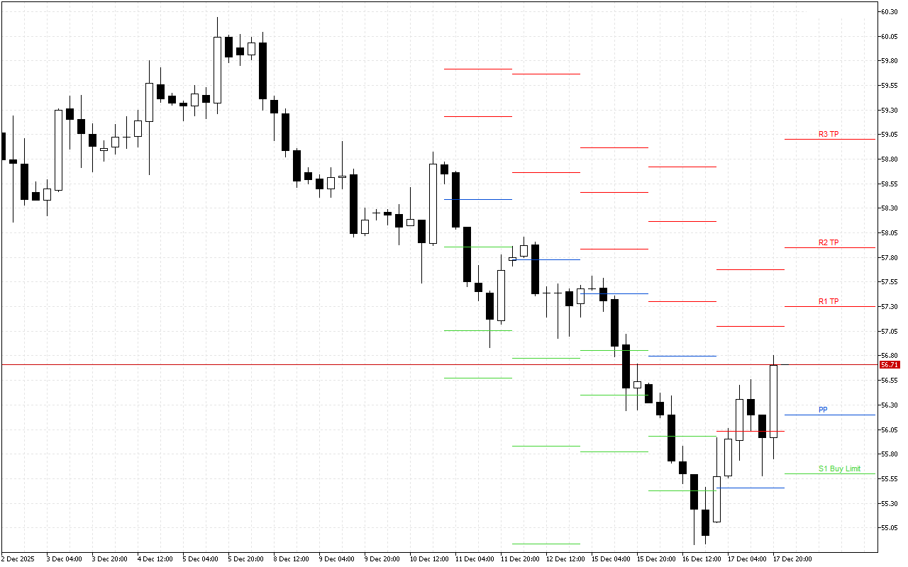 PP: 6010.23;S1: 5988.57; S2: 5946.23; S3: 5924.57;R1: 6052.57; R2: 6074.23; R3: 6116.57.