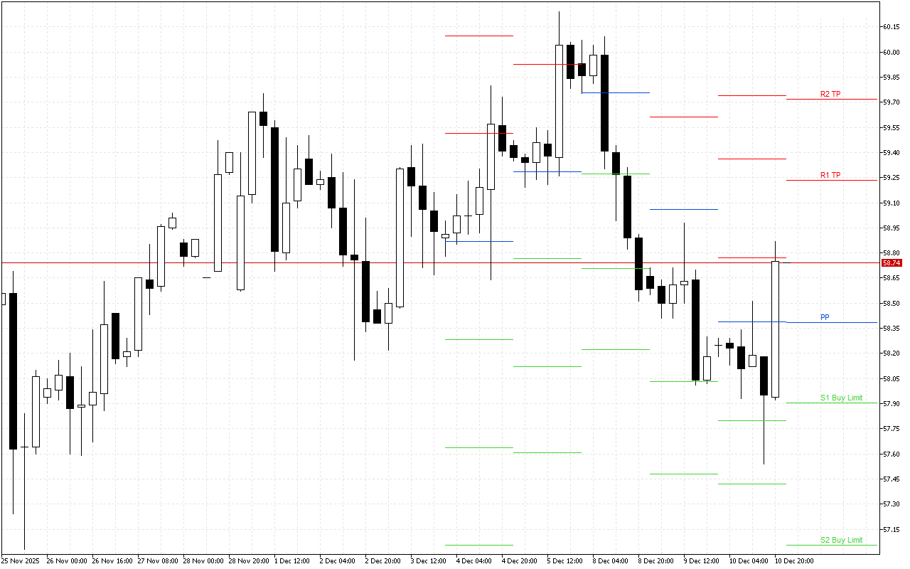 WTI H4: Tahap Pivot Points untuk Sesi Amerika pada 12.1.2026