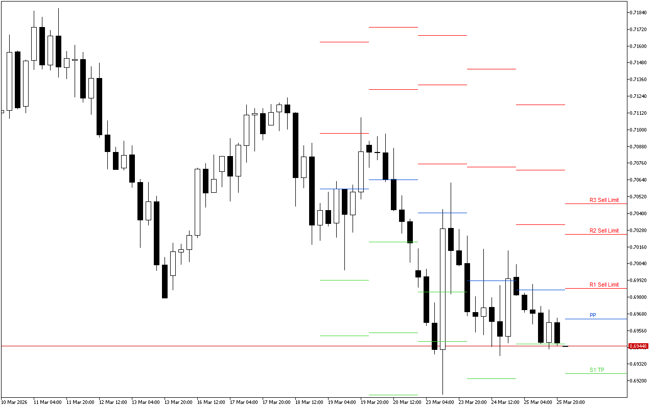 AUDUSD H4: ในระดับ Pivot Points สำหรับรอบเปิดตลาดอเมริกันในวันที่ 26.3.2026